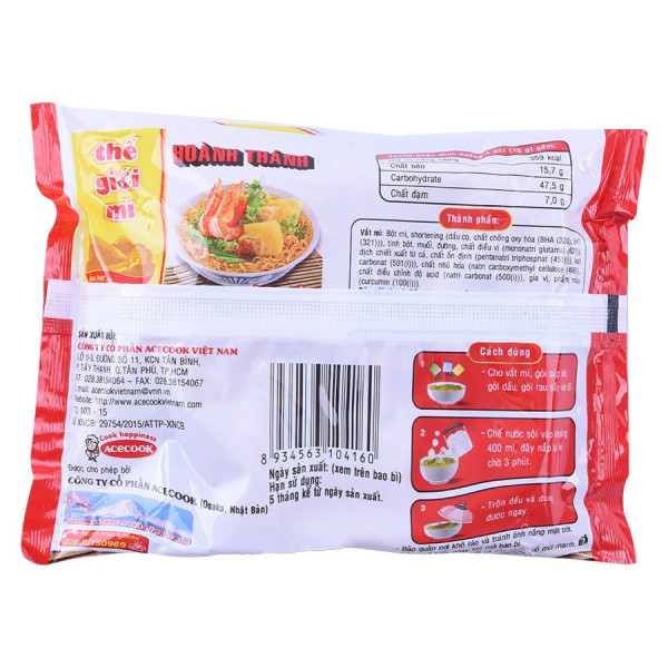 Mì Thế Giới Mì Hoành Thánh Tôm 76G có thành phần chính từ bột mì được chọn lọc cẩn thận và sản xuất trên dây chuyền hiện đại khép kín, không sử dụng phụ gia độc hại nên tuyệt đối an toàn với sức khỏe người tiêu dùng.
