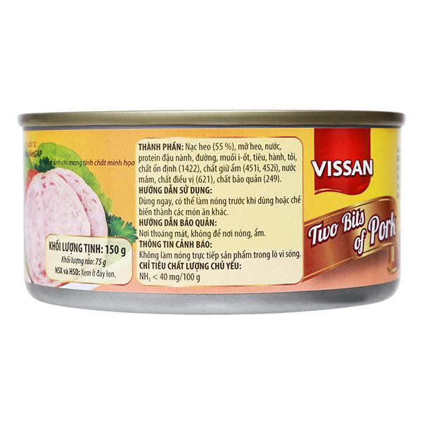 Heo 2 Lát Vissan Hộp 150G có thành phần chính từ thịt heo sạch chọn lọc, được sản xuất và chế biến dưới sự giám sát nghiệm ngặt trong từng khâu giúp mang đến cho người tiêu dùng sản phẩm chất lượng cao.